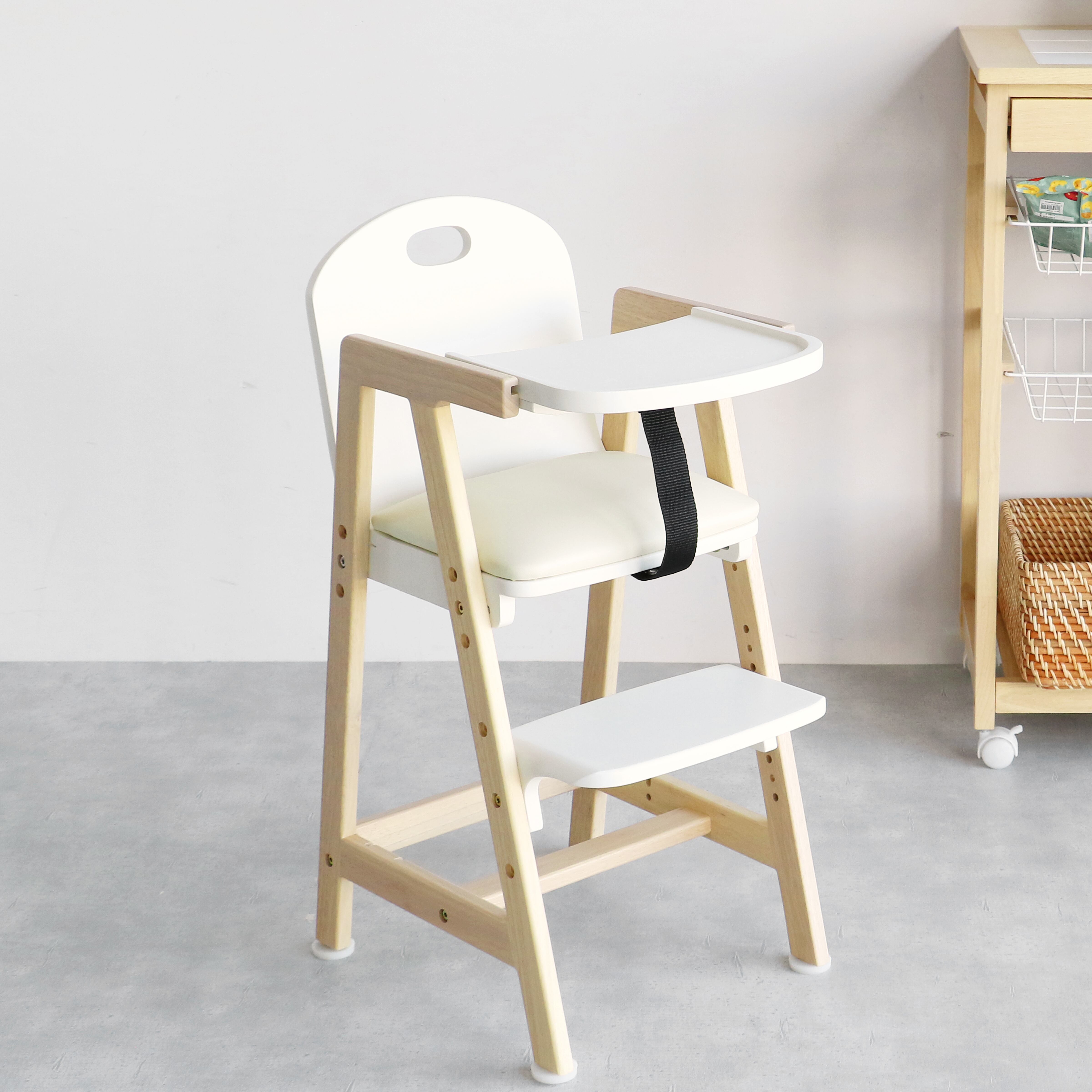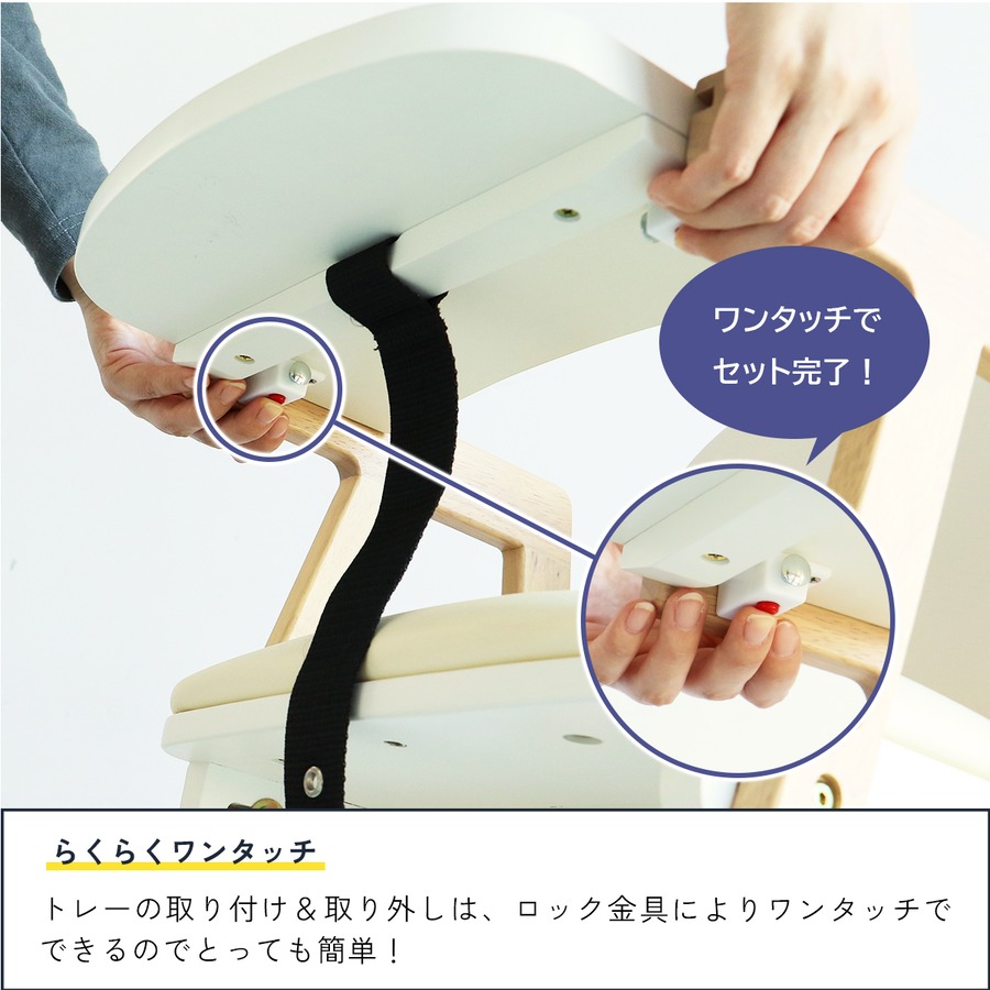 ママの気持ちを考えてつくられたキッズハイチェア。標準装備が充実しているので、オプションを追加する必要がありません。2wayで使えるトレーがポイント!